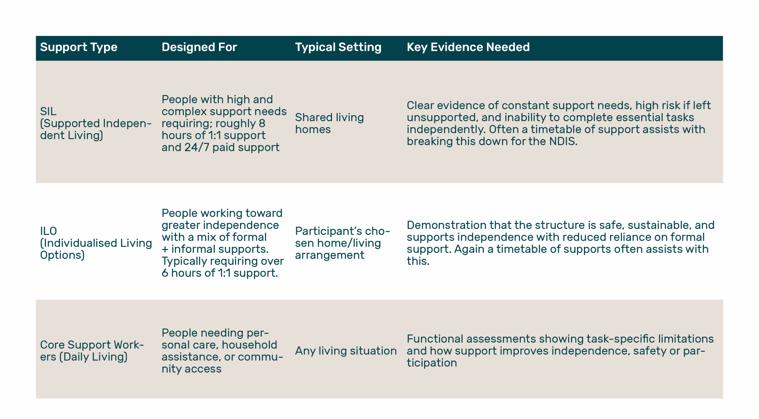 One of the biggest challenges for participants, families, and even professionals is understanding the differences between funded support options, and what the NDIS needs to see to justify each one.